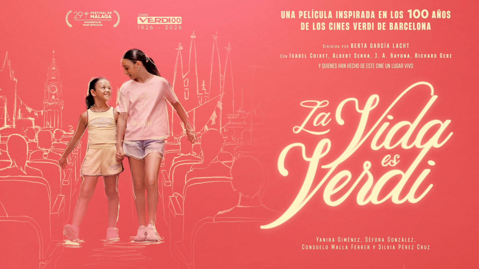 En 2026 se celebra el centenario de los Cines Verdi, el cine en activo más antiguo de Barcelona. Con humor y a través de la mirada de dos niñas, se recorre la historia de la sala y de los personajes que le han dado vida. Así se dibuja el retrato de un cine cuya huella atraviesa Gràcia, la ciudad de Barcelona y varias generaciones de cinéfilos. El Verdi es, hoy como ayer, un lugar de encuentro y pasión por el cine.